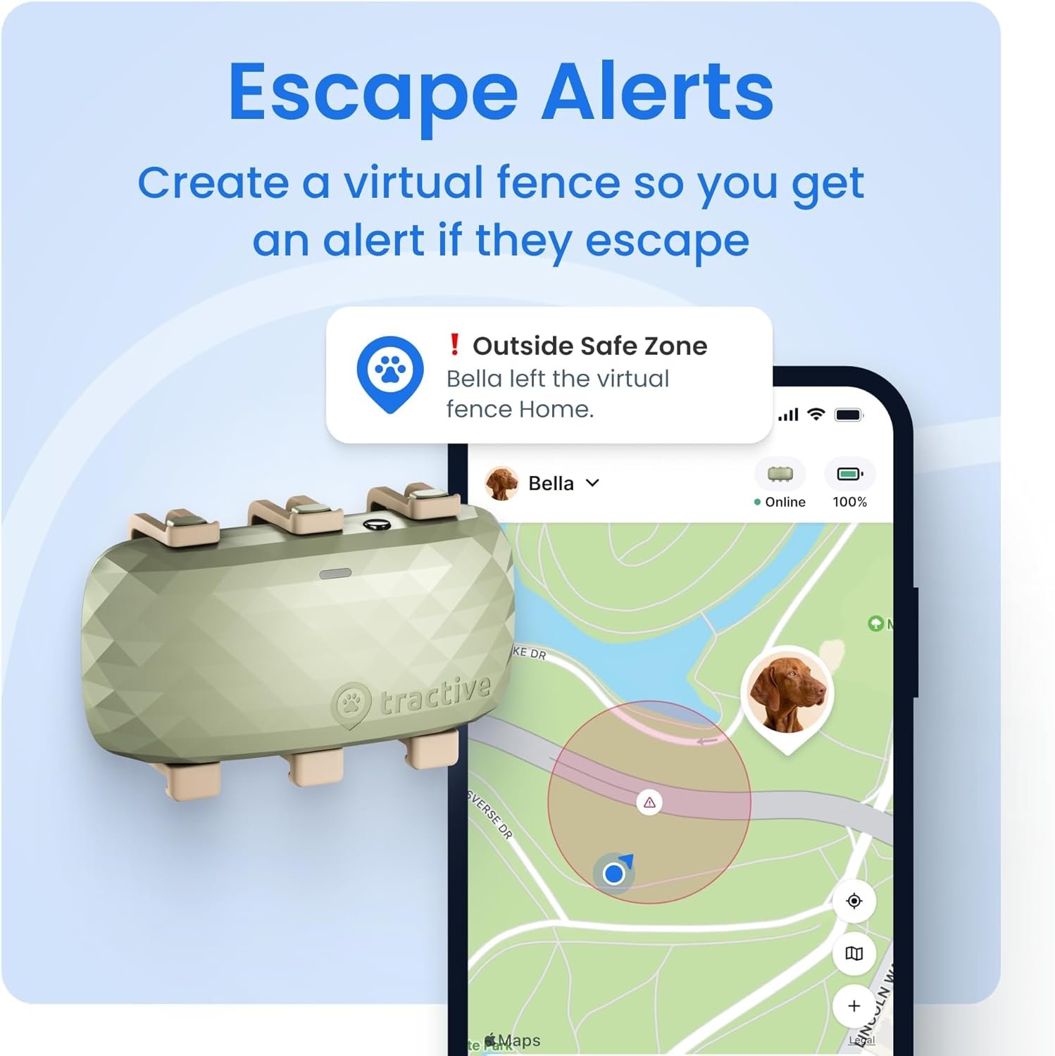 Keep your pet safe and healthy with the Tractive Real-Time GPS Tracker. This smart device provides live location tracking every few seconds, so you always know where your furry friend is. Featuring virtual fences, wellness monitoring, and a lightweight, waterproof design, it ensures peace of mind and reliable performance wherever you go. Perfect for active pets and caring owners who want security and insight in one easy app.