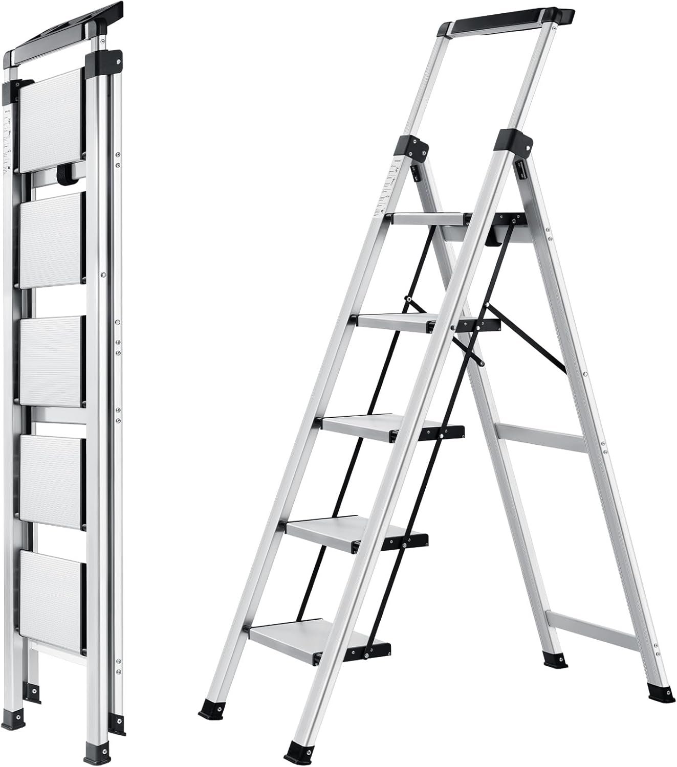The XinSunho Retractable Handgrip Aluminum Ladder is a compact, versatile 5-step ladder designed for home use. With a 330 lb load capacity, anti-slip wide steps, and a retractable handgrip for added safety, it offers reliable support for everyday tasks. Fold it flat for easy storage — check current availability and secure yours today.